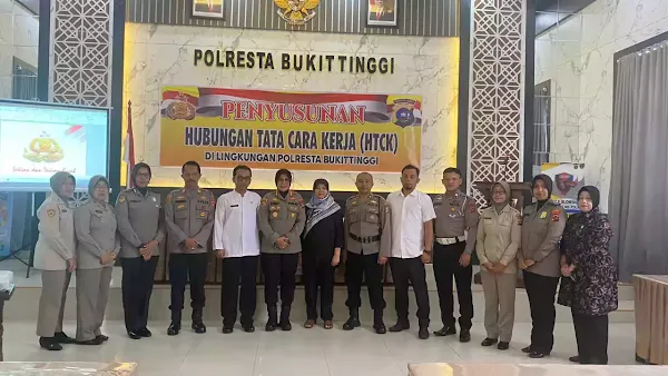 Tujuan dilaksanakan rapat pokja HTCK ini adalah guna terwujudnya ketertiban dan keteraturan hubungan tata cara kerja dalam pelaksanaan tugas unit organisasi Polri secara vertikal, horizontal, diagonal dan lintas sektoral ucap Kapolresta Bukittinggi KOMBES POL Yessi Kurniati S.I.K., M.M melalui Kasikum Kasikum Polresta Bukittinggi AKP Purwanta.